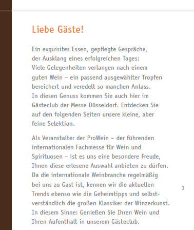 Weinkarte für den Gästeclub der Messe Düsseldorf